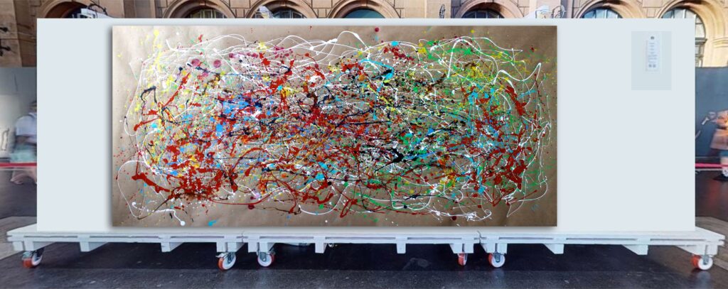 Together it is a modern and dynamic painting even in its execution, since it uses great variety of pictorial materials like airbrush, acrylic spray, pallets … resources that give relief and chromatic changes in the works, since depending on how it affects the Light on the stand changes color. This chromatic change gives the work something new and original that differentiates it and gives it a vital and dynamic character.