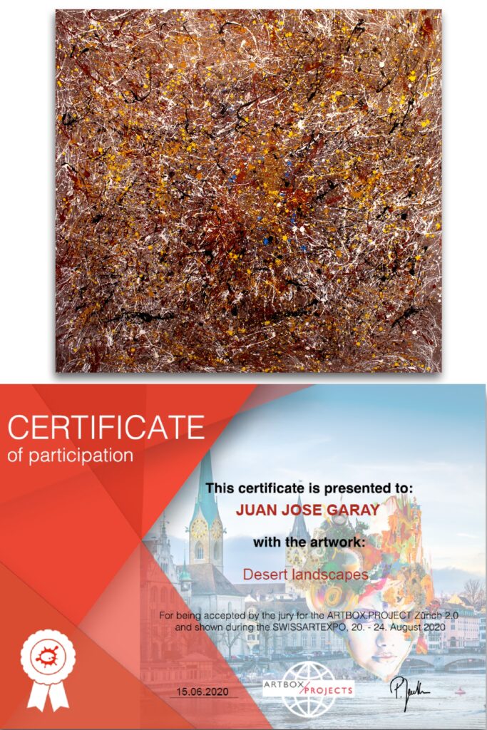 Juan José Garay in his artistic career evolves from the abstraction towards a work mainly supported in a mixed technique on canvas, pen and wood board, basically composed of oil and glues in which introduces natural materials giving the work a compact and solid texture That provides dynamism and originality to an abstract art with resources in figurative occasions.